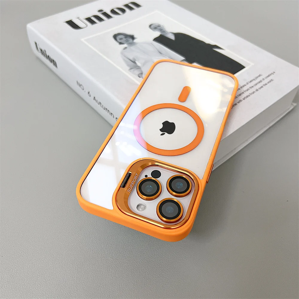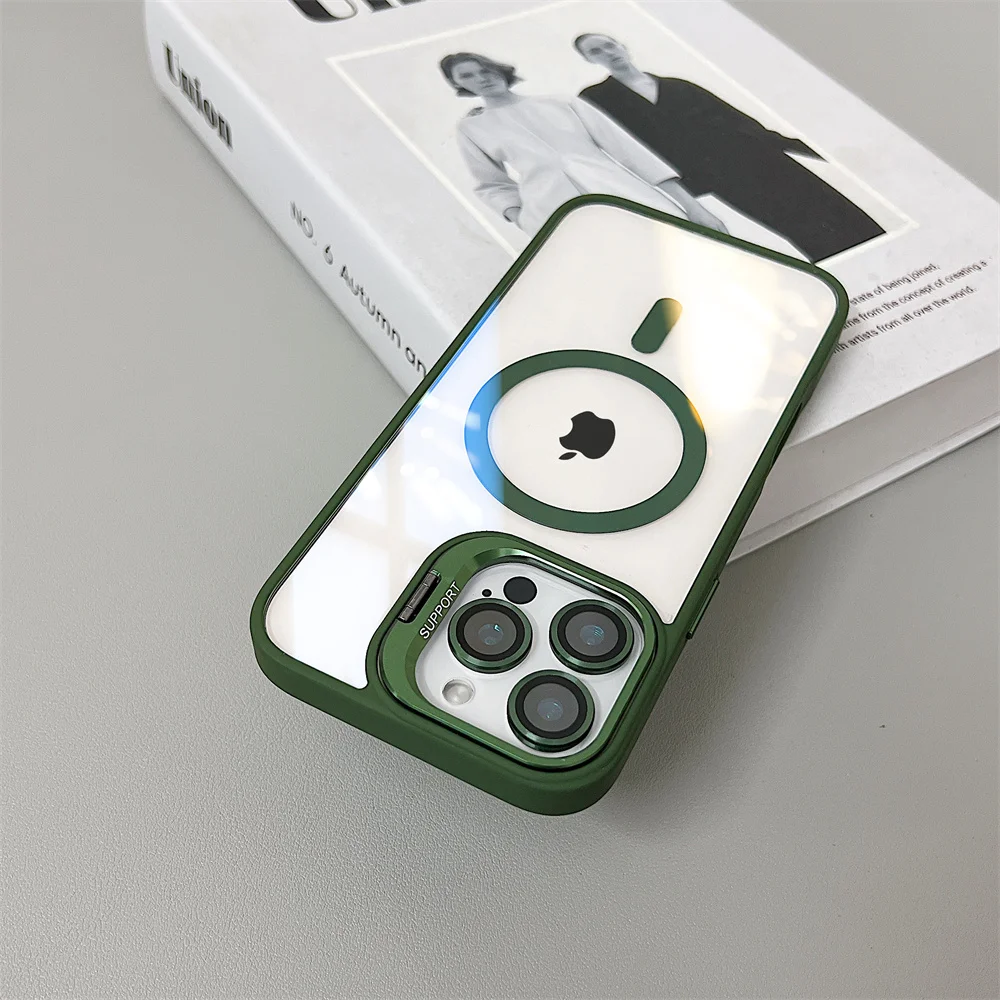 Luxury Magnetic Shockproof Phone Case For iPhone 16 15 14 13 12 11 Pro Max 16 Plus For Magsafe Stand Glass Lens Protector Cover